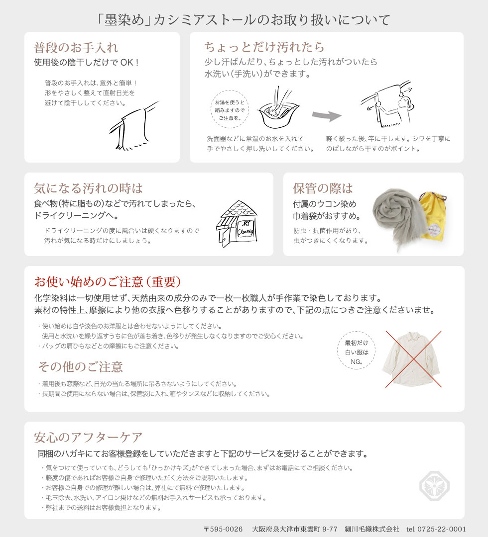 高品質のカシミヤ100%を使って丁寧に織りあげた細川ストールに、天然素材の墨を使い一つ一つ手作業で染めていきます。心のこもった職人技が生み出す高級なストールは、うっとり柔らかくてふっくら軽い使い心地。薄いグレーが上品でとってもおしゃれなストールはカジュアルにもドレスアップにもファッションの引き立て役として使えるすぐれものです。