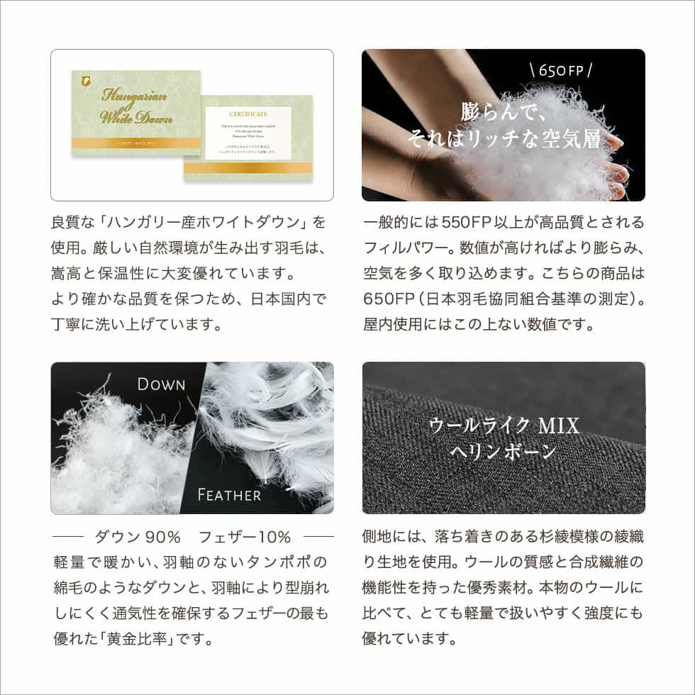 その羽毛のパワーで腰まわりから足元を優しくあたためてくれる当店のヘヴンリーダウンシリーズは、羽毛の吹き出しを抑え、ご家庭でもお洗濯できる扱いやすさも特徴です。