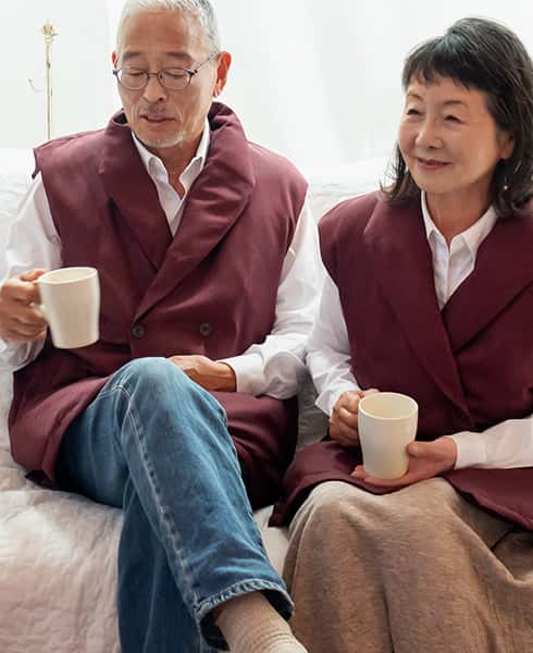 特殊構造でさらに暖か・見た目もすっきり。くつろぎダウンの新たなスタイルです。