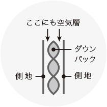 内側にダウンパックを入れることで羽毛の吹き出しを防ぎ、