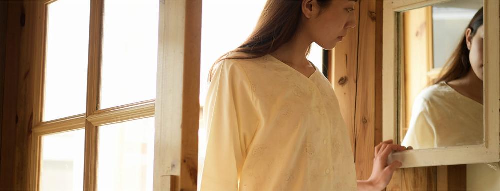 綿100%でお肌にやさしい優雅なガーゼパジャマ&ネグリジェをご紹介するページです。表地にほどこした刺繍の裏側が、いっさい直接お肌にあたらないよう、ガーゼを2重仕立てにしたこだわりの高級ガーゼパジャマです。