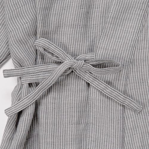 オドロキのふんわり感を誇る2重仕立てのガーゼ生地は、グレーをベースに白の極細ストライプが小粋な組み合わせとなっています。