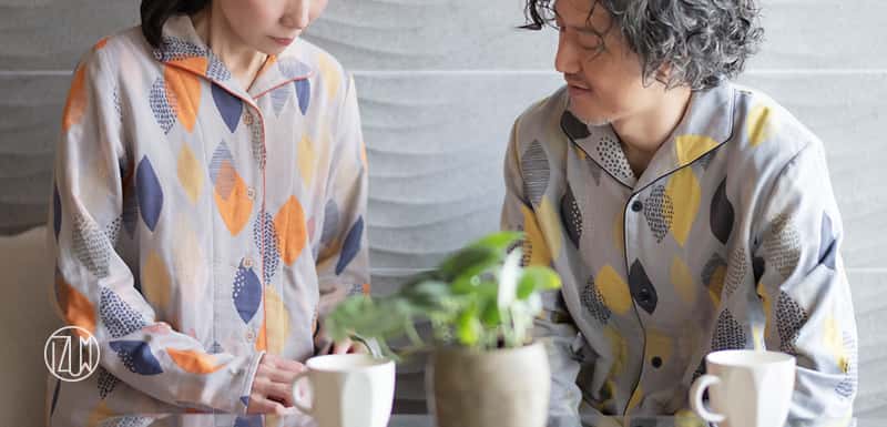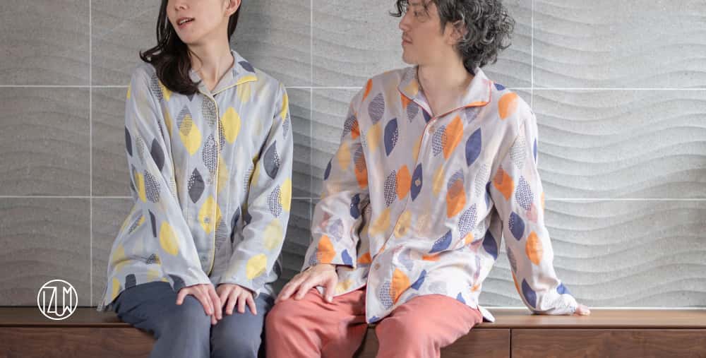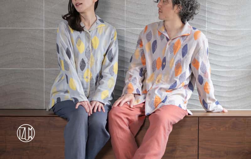 高級感漂うペイズリー柄はご年配・シニア層に人気。今治のジャカード織機にて織り上げた、日本製のほんのりあたたかい、綿100%の3重ガーゼパジャマ・バスローブ。