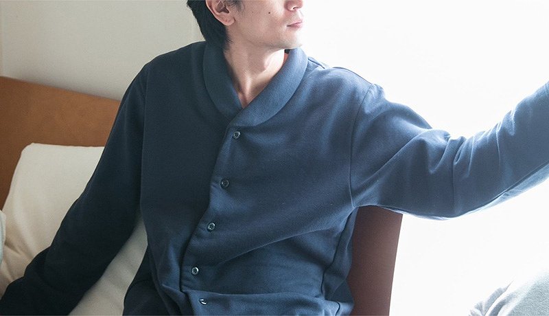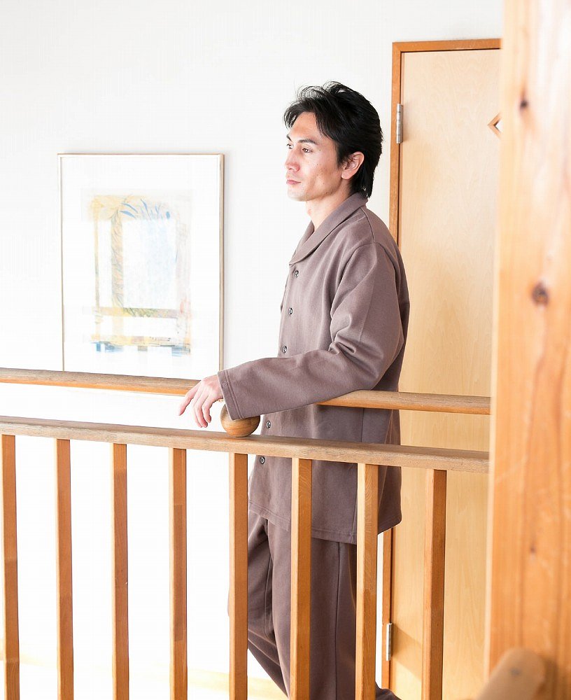 綿100%裏起毛の秋冬用素材エアコットンのメンズ&レディースパジャマをご紹介するページです。ボリュームがある綿100%の生地なのに、軽くてお洗濯の乾きも早い画期的なパジャマです。メンズ用とレディース用をご用意。