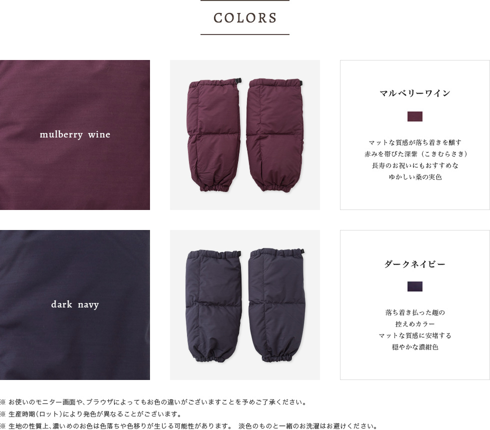 ■生地の種類/外観特性:ダウン(羽毛)製品、無地、厚手