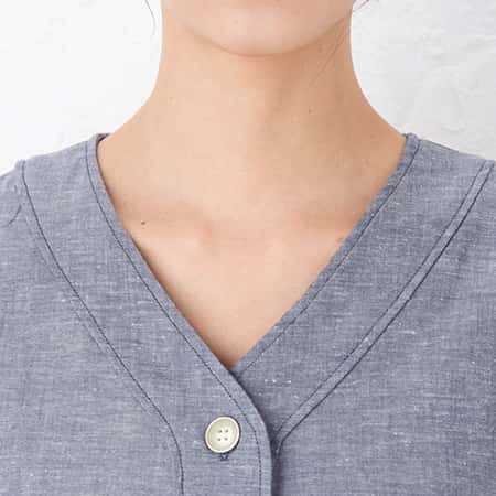| デザイン詳細 | 前開き(前ボタン、ボタン前開き)、七分袖(7分袖・半袖)、Vネック(V衿・V襟・Vえり)、ノーカラー(襟なし・衿なし)、上着 ポケット 付き(両サイド・両側ポッケ)、長パンツ(長ズボン) | |