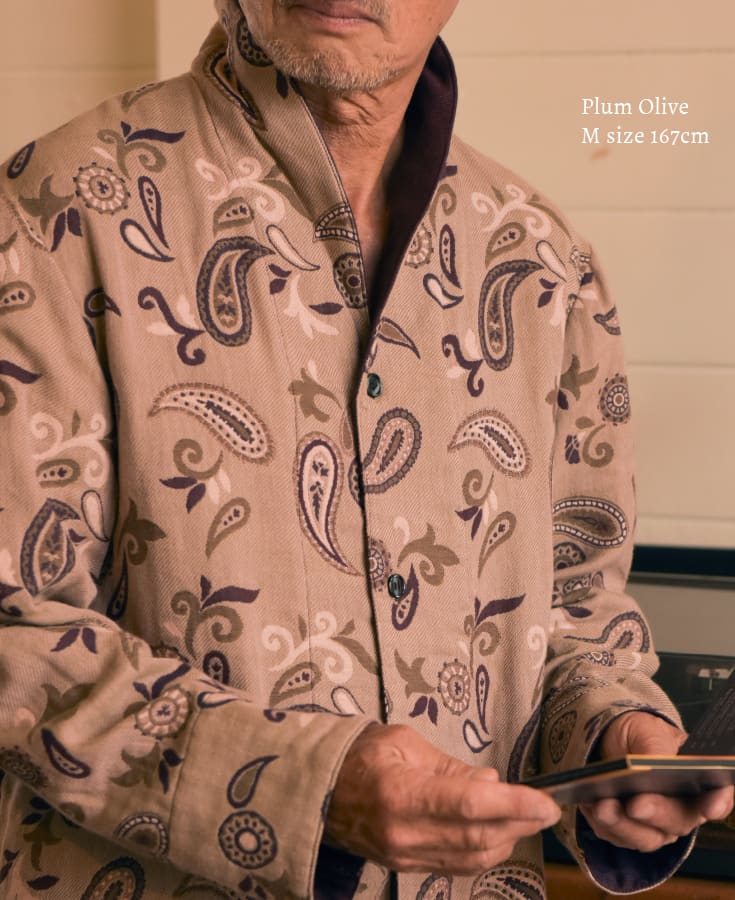 | 生地の種類/外観特性 | 三重(3重・3枚重ね)ガーゼ(綿ガーゼ・コットンガーゼ)、ジャガード織り(ジャカード織り)、ペーズリー柄(ペイズリー柄) | |