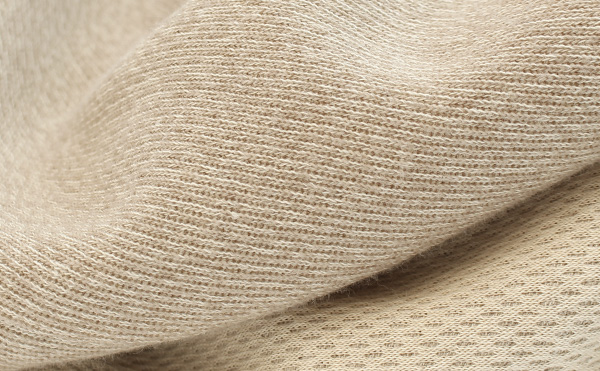 それはそれは軽やかで、楽に着られるニットのパイル生地。空気の隙間が大きい特殊な中空糸により、軽さに加え速乾性と柔らかさも魅力。