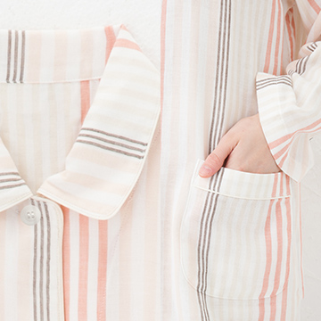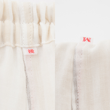 | 生地の種類/外観特性 | 二重(2重・2枚重ね・ダブル)ガーゼ、綿ガーゼ(コットンガーゼ)、ストライプ柄(縦縞柄・縞模様・先染めストライプ)、薄手(薄地) | |