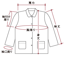 | デザイン詳細 | 前開き(前ボタン、ボタン前開き)、衿付き(シャツ衿・ラウンドカラー)、長袖、上着 ポケット 付き(両サイド・両側ポッケ)、長パンツ(長ズボン) | |