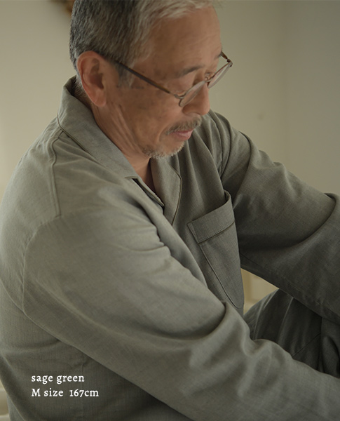 少しのストレッチで驚くほど快適な2重仕立てのガーゼパジャマ。ゆったりとした作りになっています。
