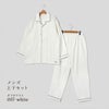 デザイン詳細前開き(前ボタン、ボタン前開き)、衿付き(シャツ衿・テーラードカラー・オープンカラー・開襟・ラウンドカラー)、長袖、長パンツ(長ズボン・10分丈)