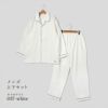 デザイン詳細前開き(前ボタン、ボタン前開き)、衿付き(シャツ衿・テーラードカラー・オープンカラー・開襟・ラウンドカラー)、長袖、長パンツ(長ズボン・10分丈)