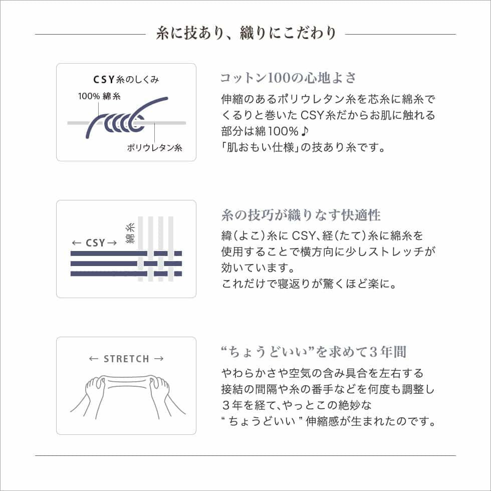 綿と麻で抜群の吸汗・速乾性+ストレッチで寝返りも楽々