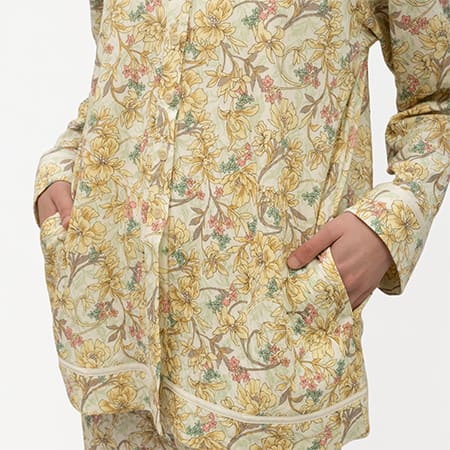 | デザイン詳細 | 前開き(前ボタン、ボタン前開き)、ノーカラー(襟なし・衿なし・丸首・丸襟・丸衿・ラウンドネック)、長袖、上着 ポケット 付き(シームポケット・両サイド・両側ポッケ)、長パンツ(ワイドパンツ、幅広パンツ) | |