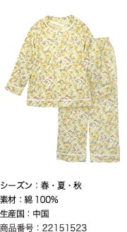| アイテム&代替可 | パジャマ(上下セット・ぱじゃま)、ガーゼパジャマ、ニットパジャマ、前開きパジャマ、長袖パジャマ | |