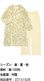| 生地の種類/外観特性 | ニット地(接結天竺・エアニット・エアーニット・ニットガーゼ)、薄手(薄地)、花柄(フラワー柄プリント) | |