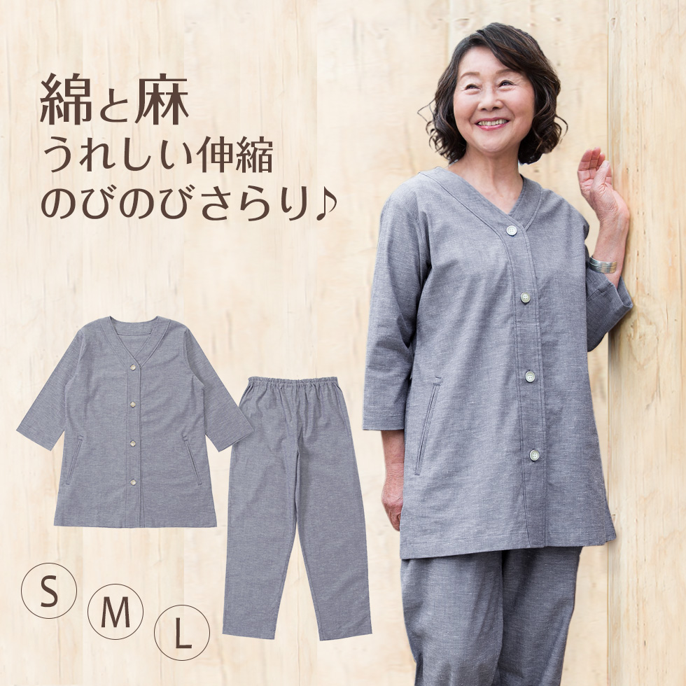 夏のパジャマはペアといってもメンズ・レディースで袖丈が違い、 男性用は半袖に、女性用は七分袖にしてあります。 それは、男性が暑がりで半袖を好まれる方が多い一方、女性は腕や肘を出したくないという方が多いため。