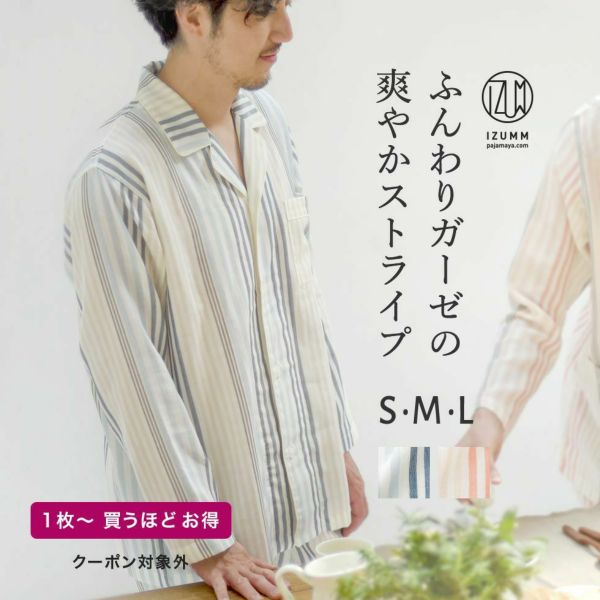 私がお勧めしたいのはなんといってもガーゼ素材。「モダンストライプパジャマ」でしたら、コットン100%の二重ガーゼ仕様で汗をサッと吸収・スッと放湿してくれる通気性抜群の一着です。二重ガーゼで空気の層を作るので通気性と同時に保温性もあり、春先の少し気温が下がった日でも快適です。